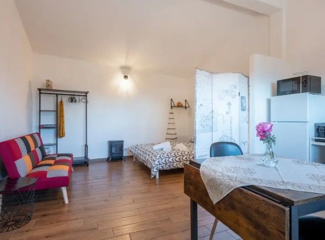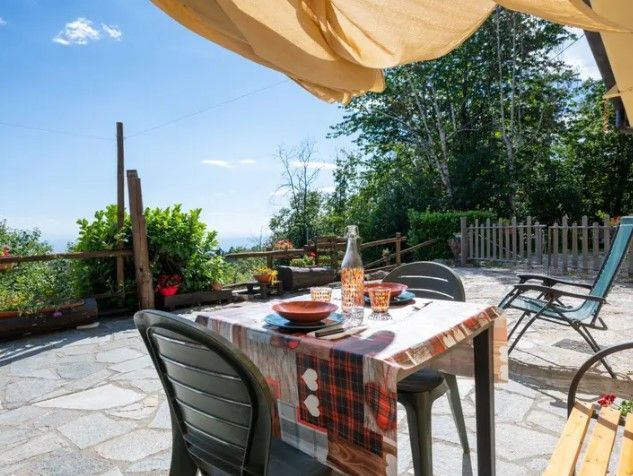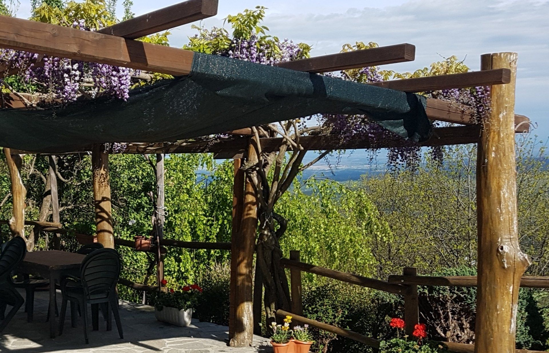 Baita Sambuco caratterizzata all'esterno da un ampio pergolato di glicine offre 2 monolocali totalmente autonomi e accessibili, inseriti nella vecchia struttura rurale completamente ristrutturata.